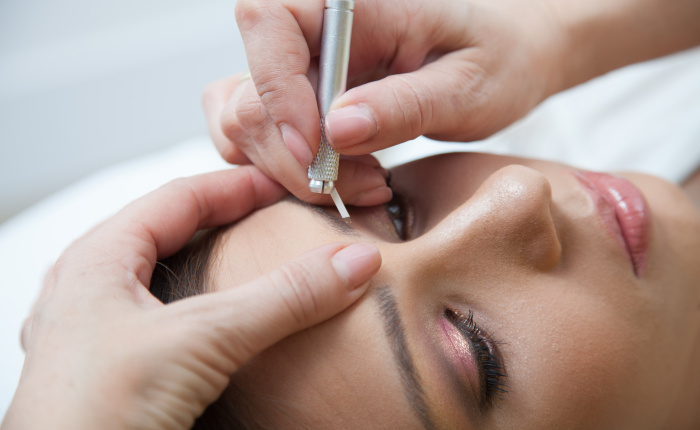 Bei der Wimpernverlängerung werden einzelne feinste Häarchen an das eigene Wimpernhaar geklebt,